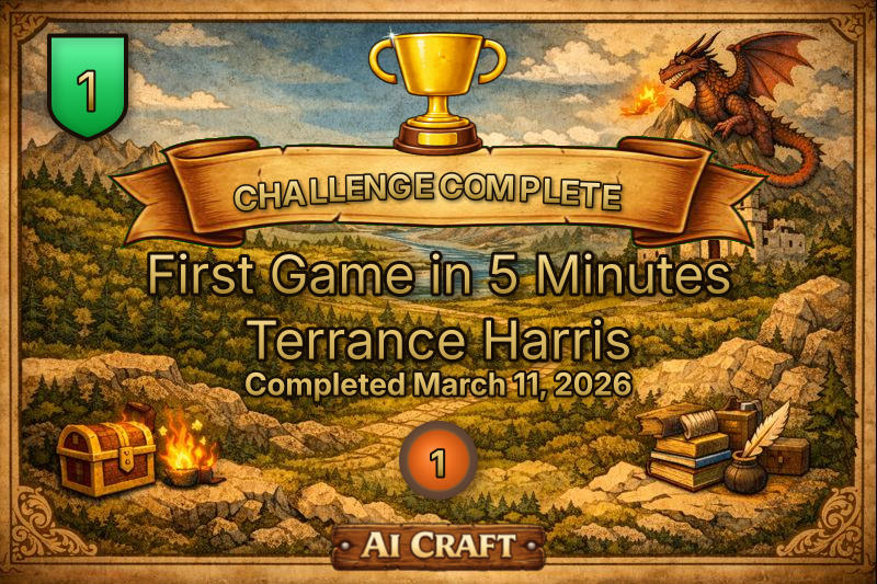 Terrance Harris's First Game in 5 Minutes completion badge - Level 1